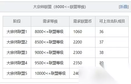 冒险岛联盟的意志联盟等级怎么看,联盟级别一览。冒险岛联盟指的是同一个世界内角色之间的组织,但并不是所有角色都能隶属于冒险岛联盟必须是角色等级在60级以上且完成2转的角色才行。下面我们一起来看看联盟级别一览吧。 一、联盟等级 联盟等级指的是隶属于冒险岛联盟角色的等级合计值(只计算>60且等级排名前42的人物)。只有联盟等级够高,才能够升级到更高的联盟级别,打造更加强大的冒险岛联盟。 二、联盟级别 联盟级别是当联盟等级达到特定数值后提升的成长尺度。联盟级别越高,就可以在更广阔的战斗地图中配置更多的攻击队队员。联盟等级达到一定水平将要进阶,进阶需要支付一定联盟币。不同联盟等级提升所需要的要求也是有所不同,具体见下表(注:因为表格太长以拆封成多个表格) 1、新手联盟