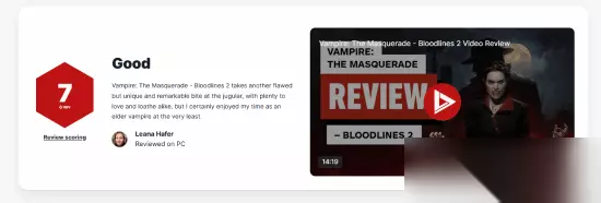 吸血鬼:避世血族2的媒体评分现已正式公开,其中一款主流评测机构给出了7分的成绩。 简评如下:这款游戏在吸血鬼题材的探索上再次展现出一种充满瑕疵却又独具个性的尝试。它融合了令人动容的情感与明显的缺憾,构成了一段复杂而难忘的体验。作为一位上古吸血鬼的扮演者,我确实沉浸于这段旅程之中。 总评:若允许我彻底代入“托瑞多”的视角,那么我对吸血鬼:避世血族2的感受可谓爱恨交织,这种情感难以用一句简单的结论概括,更无法被压缩进一个单一数字之中。 有时我渴望深入它的世界,在黑暗中与它共舞;而另一些时刻,我又恨不得亲手终结它的存在。那些令我不满的设计背后,往往隐藏着打动我的巧思;而在最令我着迷的片段里,又时常浮现出些许令人遗憾的痕迹。 它的叙事值得投入时间去经历,尽管结局带来的是深深的失落感。游戏在呈现“血族”生存状态方面表现出色——无论是隐秘吸血的紧张,还是派系冲突的激烈,都极具代入感。然而,它也无可回避地忽略了一些本应着重刻画的核心层面。 我是否享受这款游戏?是的,毫无疑问。我会向他人推荐它吗?这个问题则需要更审慎的回答。有趣的是,尽管两代作品风格迥异,但若回顾初代血族,我恐怕也会给出相似的评价。它们皆非完美之作,却都是一次大胆、独特且值得铭记的尝试。或许可以说,它们都在试图咬破现实与幻想之间的那根颈动脉——而这,也许正是对这类作品最高的致敬。