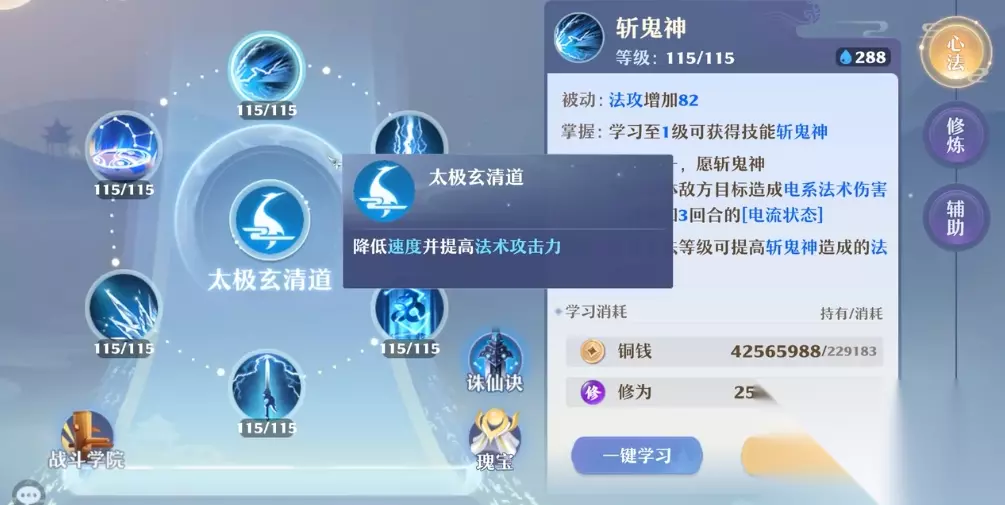 技能方面优先点满核心输出技,如神剑御雷真诀和天雷引,前者为范围雷电伤害附带麻痹效果,后者具备单体高伤与地表元素联动。功能性技能玄晶护体提供单体保护,适合战术性使用。宠物推荐携带状态肉宠或暴力群攻法宠,技能搭配高级电元素、强壮、震伤等,通过元素反应强化青云的控场与输出能力。需注意宠物与人物技能的联动,例如感电状态可触发额外伤害。 装备选择以提升法攻和双抗为主,副属性优先灵耐双加或灵体组合。特技方面醉仙望月为必备,条件允许可补充普度众生增强团队容错率。法宝推荐噬血珠与玲珑塔,被动法宝需培养六合镜(PVP)和青灵镜(PVE),根据战况切换使用。天书加点侧重天罡提升群伤忽视法防,或天罚强化炸蓝流效果,后期配合剑魄星魂针对低法力单位增伤。 实战中青云需利用地形与元素机制,如高地攻击增伤、雷技能遇水触发麻痹等。PVP中建议8灵2耐或6灵4耐加点提升生存,配合低速守尸策略;PVE则可选择全灵加点速推副本。仙友阵容推荐法攻+物攻+辅助+封印的组合,例如李勋(法攻)/幽姬(物攻)/天玑(辅助)/血娘子(封印),弥补单一输出类型的缺陷。需根据队伍需求调整,避免过度依赖法术输出导致战术僵化。