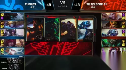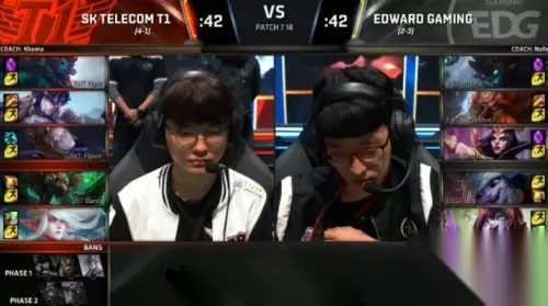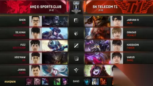 AHQ老将Westdoor在本场比赛继续拿出招牌小鱼人后,遭到了对方打野的颇多关照,且在上路Ziv茂凯压力过大的情况下,Mountain皇子无力给予中路更多支持。反而是C9中下两路,在Contractz酒桶的帮助下,打出巨大领先。最终全面占优的C9持续施压,轻松取胜。AHQ在本场比赛失利后,遗憾告别本次总决赛。 SKT 1:0 EDG EDG再遭SKT翻盘 最终无缘八强
