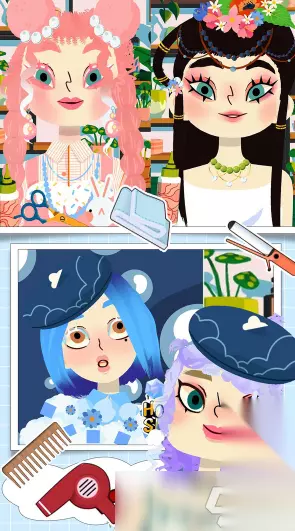 顾客来到理发店之后,首先需要为他洗头,并且修剪乱糟糟的碎发,然后然后根据顾客的需求,利用手中的剪刀和电卷发器做出一个又一个的精致造型,通过屏幕上的触屏操作就可以点击使用不同的工具,完成精细的发型设计环节。除了顾客的头发设计,还可以为他们添加上帽子或者是眼镜,做好头部的搭配设计。 手机扫码下载233乐园APP预约 预约订阅最新动态 优先233乐园APP下载 2、《公主贝贝理发沙龙》