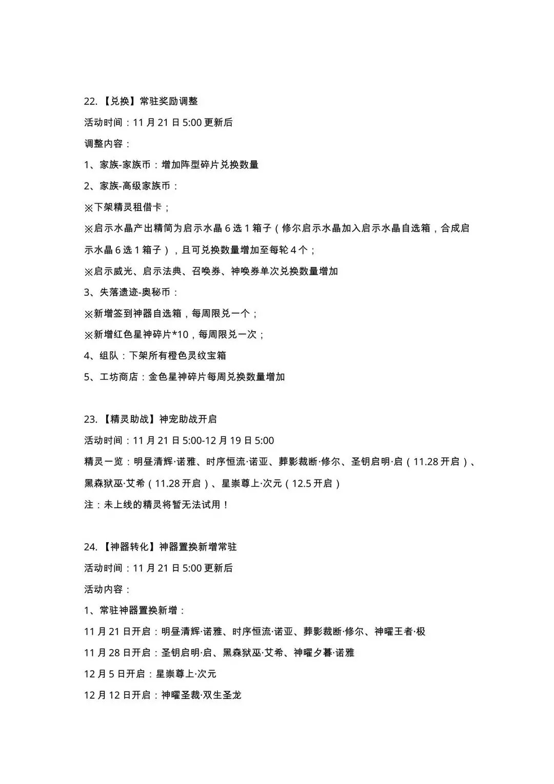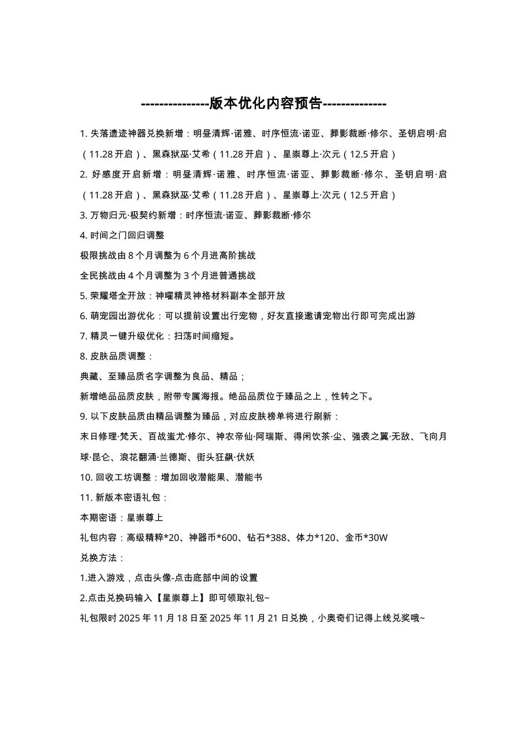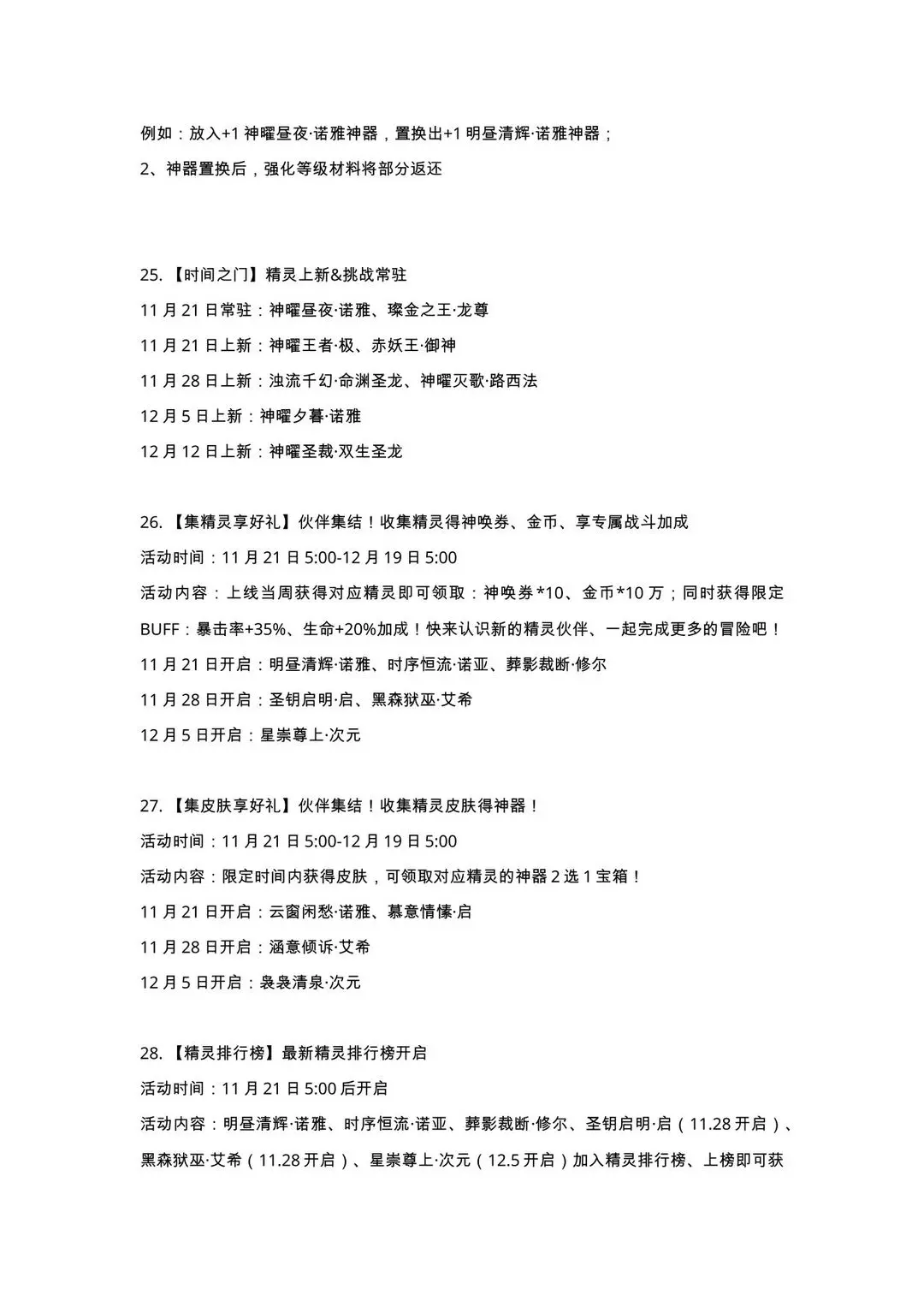 11月21日更新公告-源起时代开启,小诺生日会福利放送!