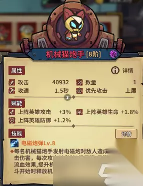 机器猫炮手 颜值:★★★★★ 强度:★★★★☆ 颜值介绍:机甲是男人的浪漫。 强度介绍:最强单体输出,射手队唯一挂件,这debuff刷新率,掉的没有挂的快。 特别介绍:跟火龙一样,一个物理盾一个法术盾,拿这角色就是为了挂流血,这护盾属于锦上添花。