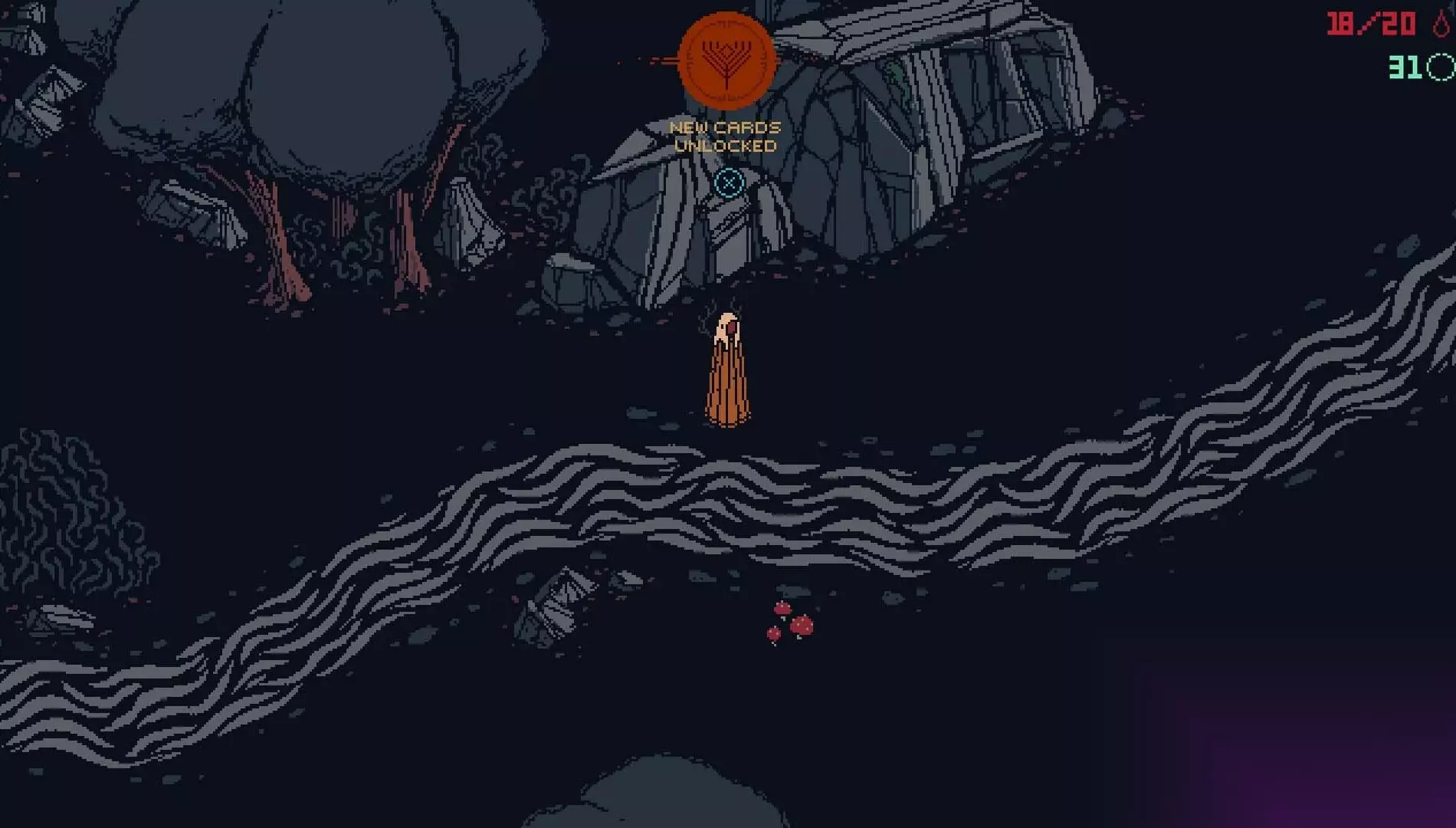 但游戏是公平的。当你死亡时——你会死很多次——你会在导致你死亡的遭遇战之前重新复活。你保留你的牌组。你保留你的知识。你会掉落“死亡之嚎”(Death Howls,我们版本的魂系列掉落物),但你可以找回它们,就像在……嗯,你知道我在说什么。