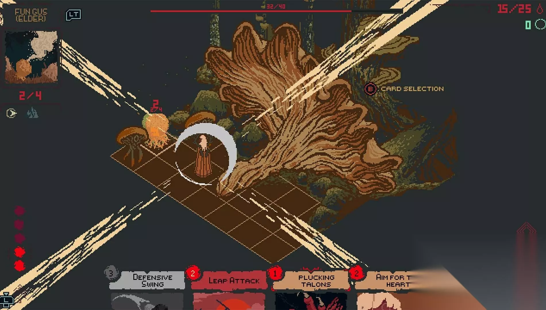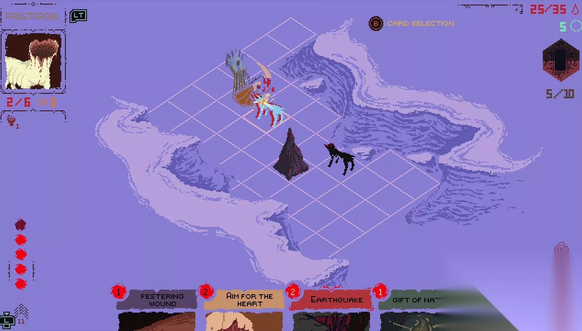 我们试图避免传统意义上的“刷等级”,而是旨在打造有目的的探索。与此同时,世界不会重置。你的进度会保留。你不是在重头再来,而是在不断适应和学习。 公平的“毫不留情” 《Death Howl》的“毫不留情”名副其实。当你在神圣林地(Sacred Groves)休息时,敌人会重生。每一次失误都会受到惩罚。普通的遭遇战,更不用说 Boss 战,都要求玩家识别模式并在网格地图上进行精确的战术定位,在这里,站位与针对特定敌人类型定制的卡牌和牌组同样重要。
