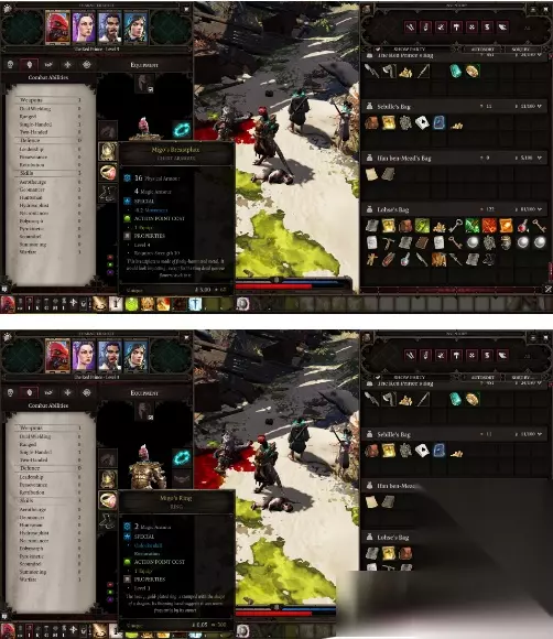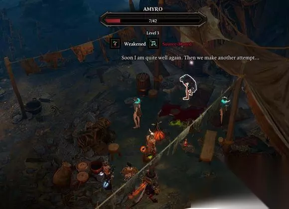 继续向南游戏会自动保存,之后遭遇到一些虚空虫子,建议先不打,招满人之后再打不然升级的话队员的加点是系统自动默认,当然第一章之后上船可以无限洗点,所以也无所谓。虚空虫死的时候会爆炸,记不太清。这里等于是个初级教学吧,有血液地面(导电),毒气(可被点燃等等等,需要玩家主动发觉)。使用环境效应可以使不可能的战斗更容易。例如,油和毒是易燃,水和血液表面会导电(或被冻结,导致滑倒)。 猪脚继续向南,直到抵达欢乐堡城门。此时王大锤登场,直接吸取源力导致魔导师安土萨Atusa原地爆炸,精灵吃安土萨的腿会解锁血液记忆和一个技能。不吃就可以留着以后地牢里的剥皮者对话送给他以不触发战斗并获得经验,之前再强打。吃肉可以招募Sebille女精灵来完成,当然费恩之后拿到面具也不需要精灵队友。欢乐堡里有很多NPC和支线任务,但猪脚的主要目标是逃离这座堡垒,并转移到岛东部。 目前的任务: *每个母亲的噩梦 *冲击 *杀人魔 *被监禁的精灵 *Withermoore的灵魂罐 *血液记忆 *暴君的工件 *抵抗迹象 *Saheila的Signet *欢乐堡的竞技场 *找Emmie(狗任务) 大多数这些任务都是奖励EXP和装备,但没有一个是必要的,都是支线。当然RPG游戏等级就是一切,低等级打高等级几乎就是作死,除非你有桶子或者华丽的宝箱。其实现在就可以把猪脚的环卸了。首先需成为地下竞技场的冠军(厨房附近的舱盖),下去打一架。之后跟Nebora(主城门附近的商人)交谈,她将把你的环取下(现阶段只能取猪脚一个人的环)。取下后见到卫兵就会开打,或者同意被送往牢房,不建议现在就卸。 *每个母亲的噩梦NPC法拉Fara