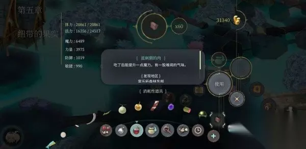 【果实森林】拾取,画圈位置会刷,跟【白哈密瓜】一样。中期回血药。 J-2 晶莹的冰块