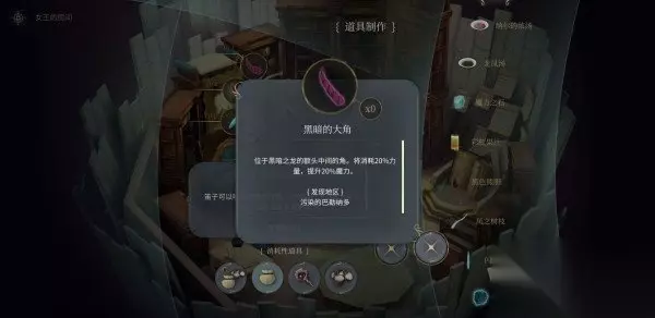 【污染的巴勒纳多】打【黑暗之龙】获得。中后期材料(你以为只有小角?)。 H-6 黑暗的大角