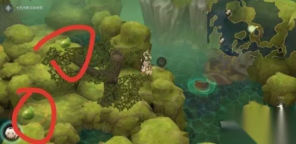 【果实森林】拾取,图中画圈处会刷。中后期的回蓝药。 B-8 白狐狸珠子