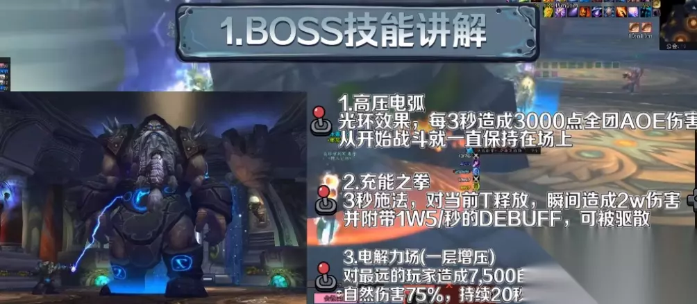HP=3000k/10000k。 攻击力奇高无比(英雄模式下约25k每击)。最好是含有多量自动免伤技能的坦克担当。 高压电场:全场光环,每3秒变成1.5k/3k的果然伤害。 交融拳击:每30秒一次,对当前对象酿成20k/35k的天然伤害,并在下面4秒内再酿成20k/48k的陆续天然伤害。可驱散。 静电破坏:对非近战地域内随机方向放射闪电箭,对落点8码半径内一切方向酿成约4k/8k的当然伤害,并使其在20秒内分外经受25%/75%的当然伤害。弗成驱散。 力量涌流:均匀每60/30秒使用一次。使如今方针被当然能量充裕,攻击力提升200%,但会在60/25秒后使方针熔毁,并对15码半径内全部方针酿成30k的当然伤害。(在此外两个首级头目死亡后获取) 电能加强:在场上惟独断钢者存活的情况下,每有别名小伙伴死亡,断钢者的攻击力就升高25%。和超等充能相互叠加。 团队站位
