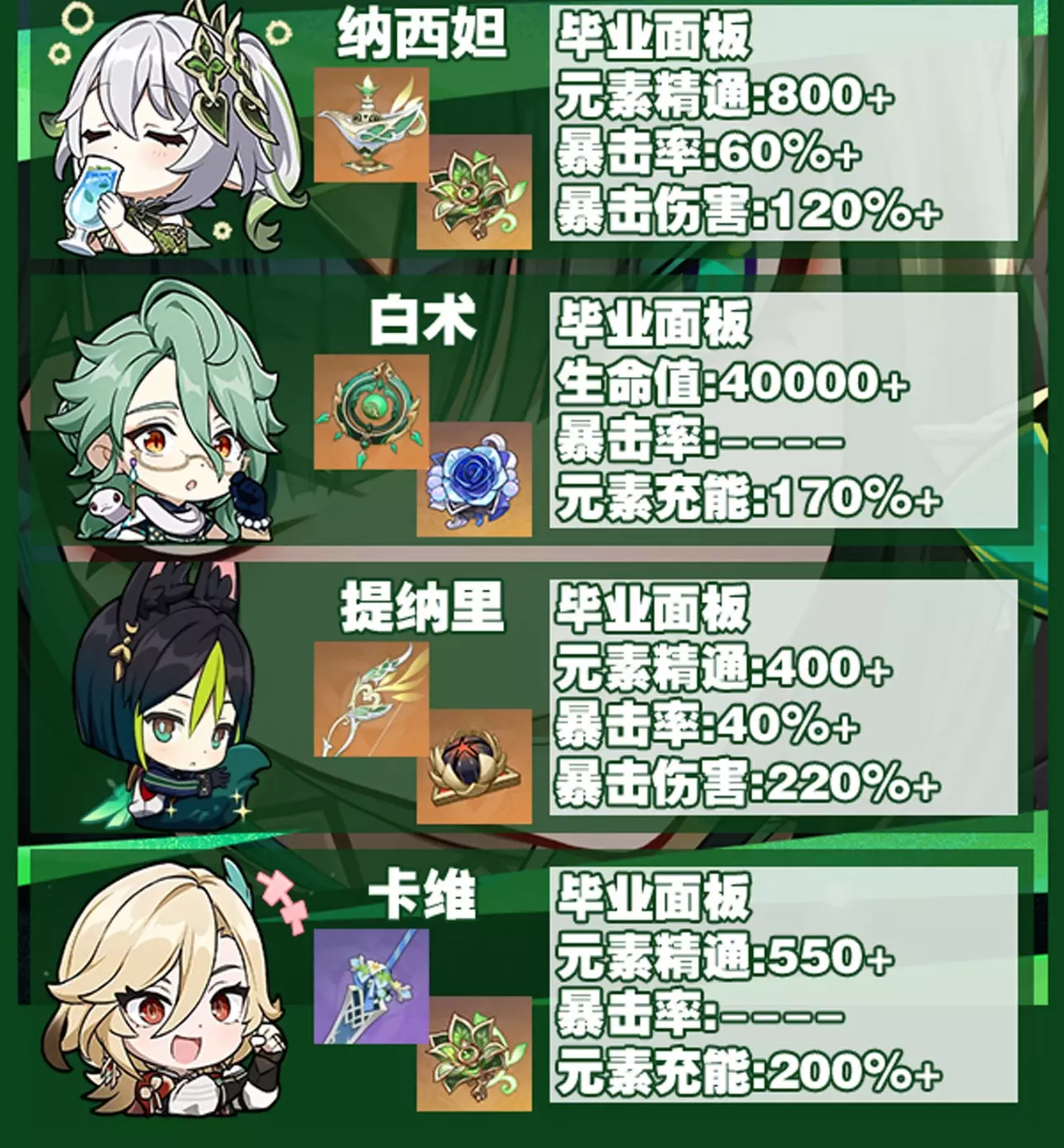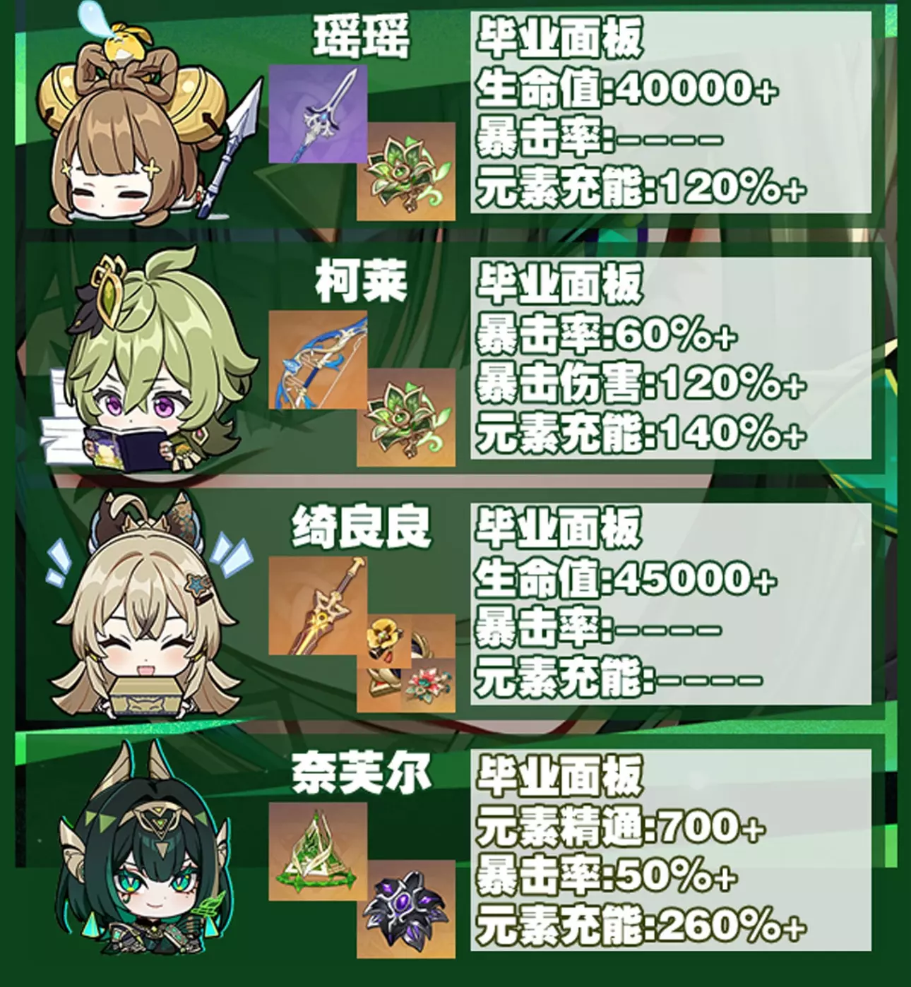 本期给大家带来的是原神草系全角色毕业面板推荐 大家抓紧来看看吧 最后祝各位旅行者抽卡不歪十连双金 #原神创作者激励计划 #原来你也玩原神 #原神萌新 #原神攻略 #原神 #原神日常
