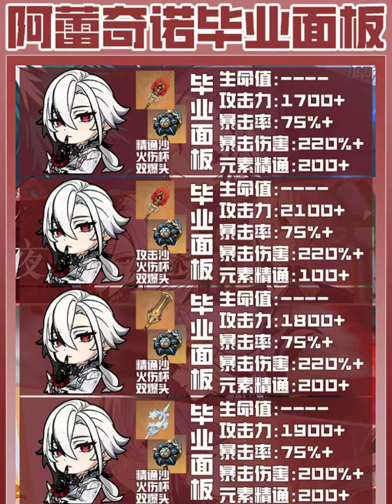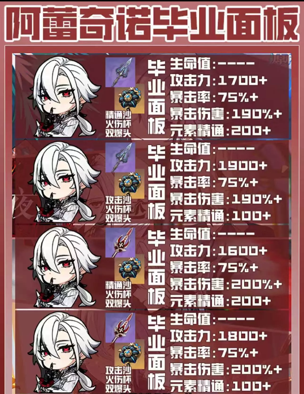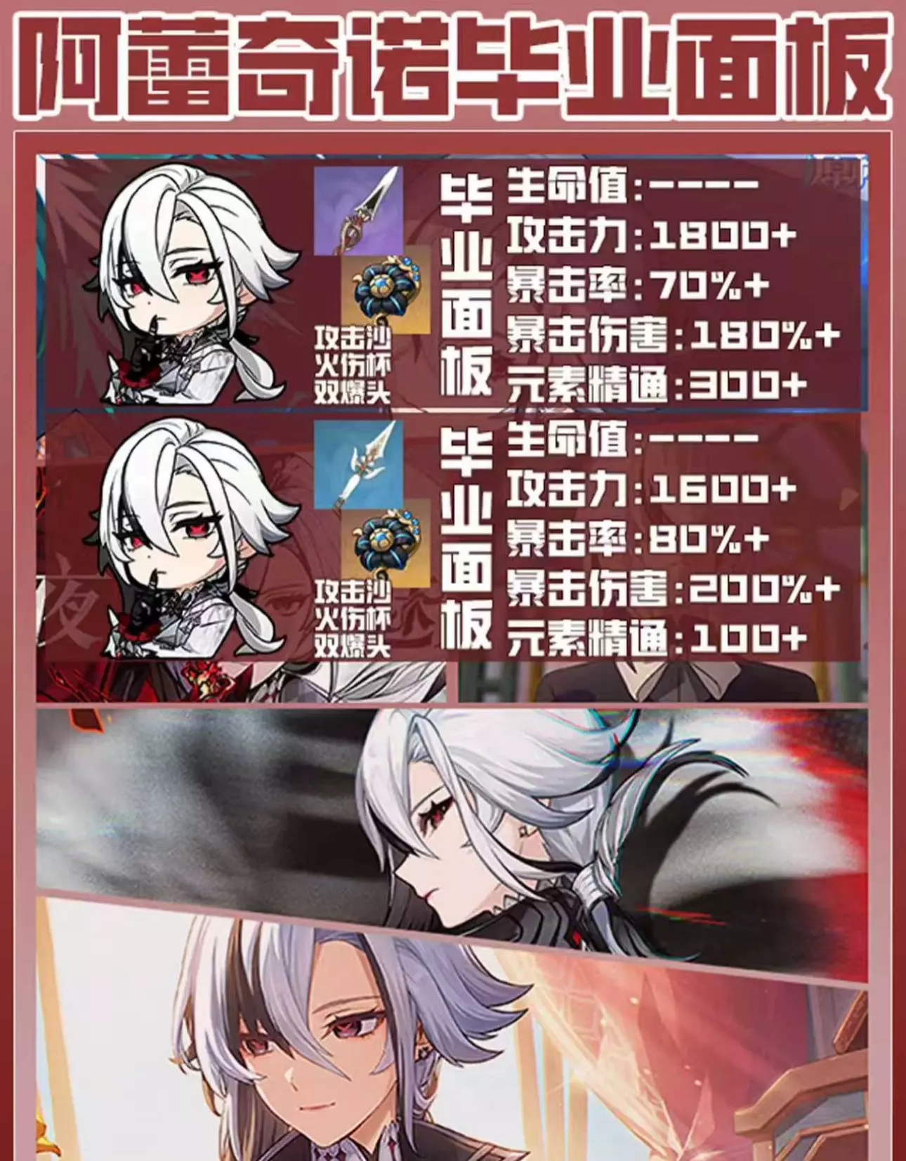 本期给大家带来的是原神仆人阿蕾奇诺的全毕业面板推荐 武器选择双爆武器即可 圣遗物选择谐律四件套 还是老规矩祝各位原宝们十连双金一发入魂 #原神创作者激励计划 #原来你也玩原神 #原神萌新 #原神攻略 #原神 #原神深渊 #原神日常