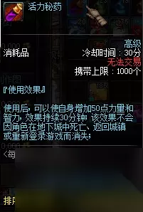 活力秘药 使用后+50点力量持续30分钟
