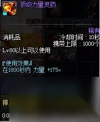 顶级力量灵药 175的力量加成还持续1800秒非常可观,就是价格稍贵