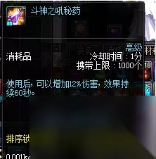 斗神之吼秘药 锐眼药水绝版吼成为玩家刷图最普遍的爆发药水,简单又粗暴+12%的伤害,而且获取也比较方便。