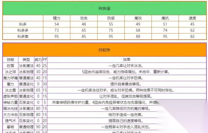 洛克王国内里有好多的宠物精灵,即日给网友带来的是游戏内里的科多索索技能表,尚有好多的玩家不清楚技能是甚么,那么接下来就为网友带来了详细的内容. 洛克王国科多索索技能表 中文名:科多索 属 性:冰 序 号:180 身 高:1.5m 体 重:35.6 kg 爱 好:喜好泉水 进化道路: