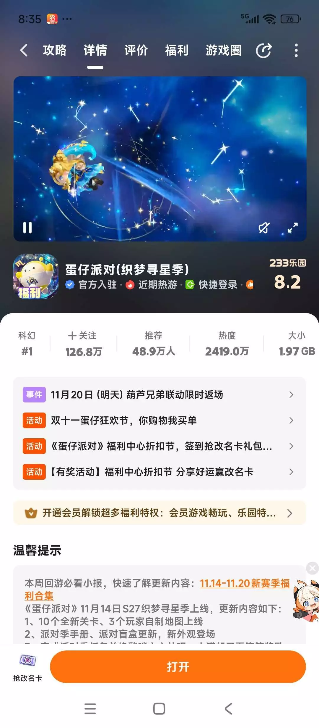 蛋仔派对更新公告栏