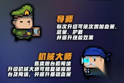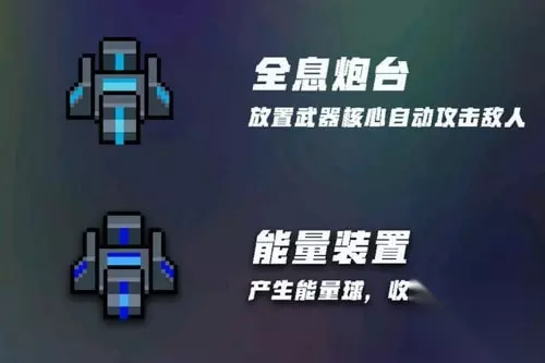 5.机械大师 功能:售卖炮台和掩体,升级机械大师可修复破损炮台及掩体,并提升基础血量。 机械大师售卖的炮台能很大程度上帮助抵挡敌人的进攻。 三、炮台介绍 1.全息炮台 效果:放置武器核心自动攻击敌人。 2.能量装置 效果:产生能量球,拾取可回蓝。