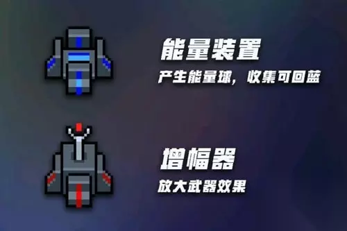 3.增幅器 效果:放大武器效果。 4.脉冲装置 效果:定时释放冲击波消除敌人的子弹。