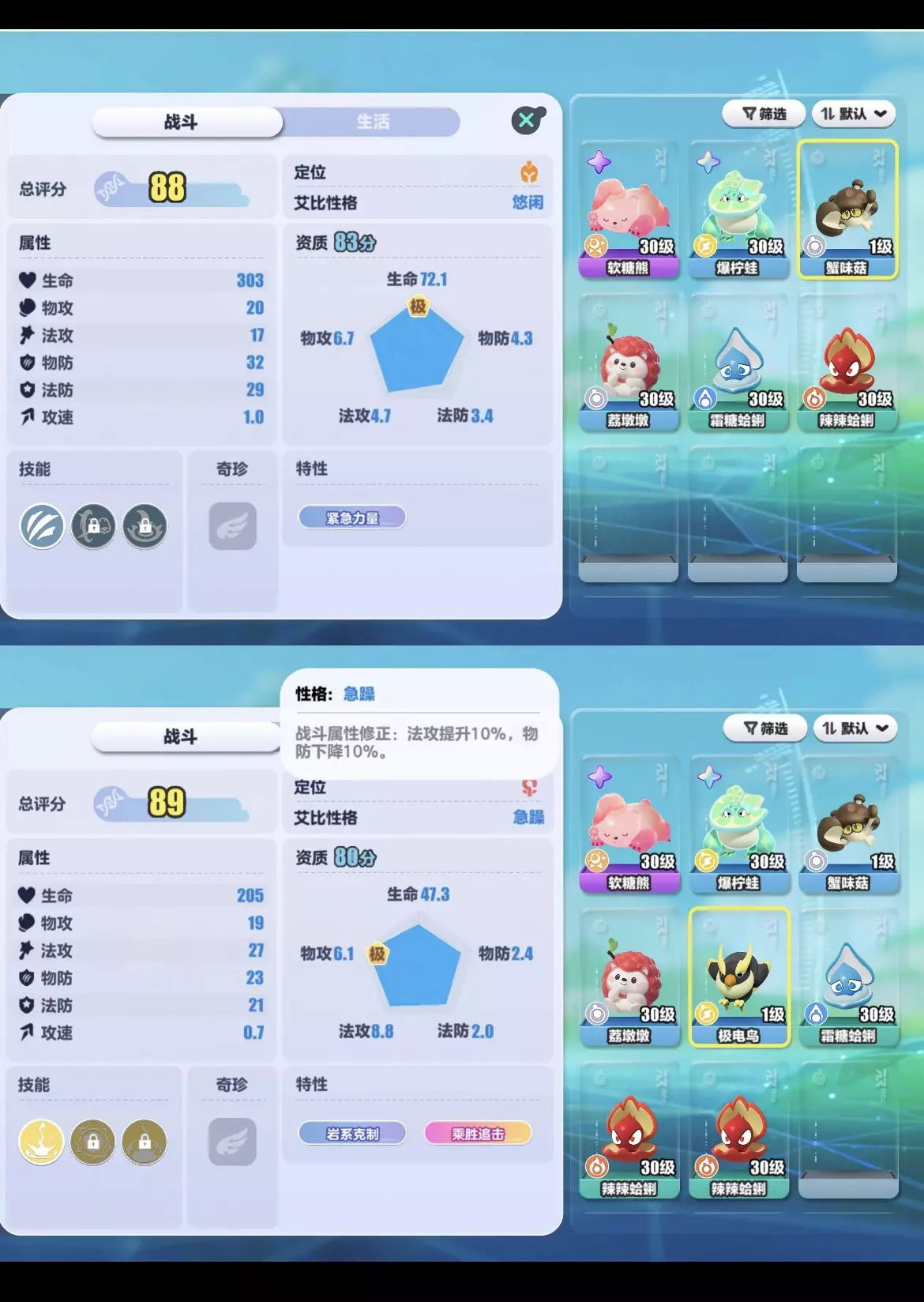 1️⃣去到冰爽浪浪滩,就显示该区域有异色艾比[色色R]居然是一只隐藏异色的大青蛙[色色R]附近甚至还有一只野生的霜糖蛤蜊,不用刷,直接抓[扶墙R] 2️⃣接着去了甜甜果森林,结果又出现有异色标,一看是个粉色软糖熊[色色R]去橙子河那边,又看到了野生的甜筒橙橙[色色R]树下还有一只蟹味菇,抓了发现有83分,可惜性格不太好[暗中观察R] 3️⃣最后去了一趟炙烤肉肉山,连续掀开两个石头,都有辣辣蛤蜊[色色R]进山洞一看,又有极电鸟,抓了之后发现资质有80分,而且性格还特别好[大笑R]路上偶遇一个野生荔敦敦,顺手也拿下了[亲一个R] [黄金薯R][黄金薯R]就这么凑够了九宫格的,全是罕见的艾比,探索时间也正好迎来红色倒计时[买爆R][买爆R][买爆R]心满意足的退了,并发个小红书,望周知[亲一个R] #蛋仔派对 #异色艾比 #暴躁头目 #运气爆棚