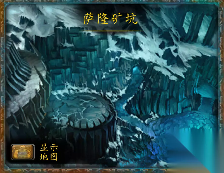 只有那些攻克灵魂洪炉的人才具备进入这个区域的资格,萨隆矿坑将成为联盟和部落大军更深入巫妖王领地的通道,来到此地的玩家将会感受到来自天灾领主泰兰努斯的威胁。 然而想打败他并非容易之事,在与泰兰努斯正面交锋之前,冒险者们得先完成来队长交办的事——释放所有被天灾军团囚禁的盟友。否则在那之前,泰兰努斯通常都将敌人交给部下去处理,也就是堡垒矿脉的工人。 该副本只有一个任务,跟随吉安娜或希尔瓦娜斯击杀最后的Boss即可完成。 副本地图