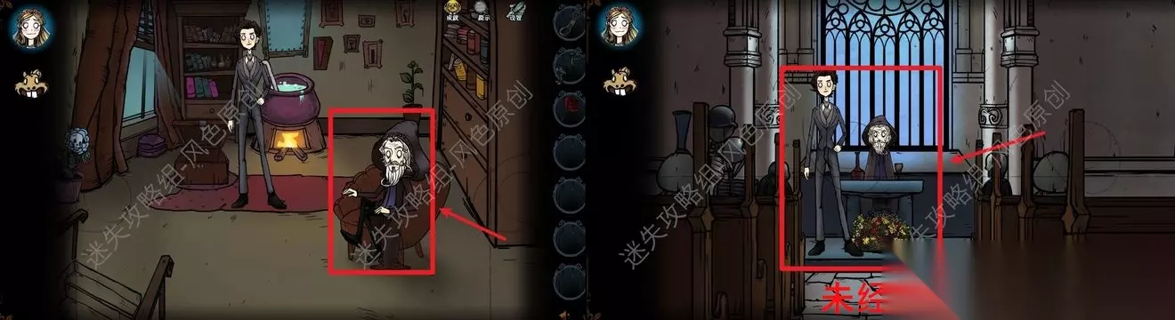 89.返回与长老进行对话,场景切换到教堂后,再点击图中所示区域,推进剧情,即可完成爱丽丝线结局,并获取【塔罗牌:战车】。在获取【塔罗牌:塔】的场景中,选择先让松鼠奇奇吃掉鸟蛋获取塔罗牌后,在钢琴处摆好乐谱后会触发乌鸦出现,此后按照正常路线完成爱丽丝线,即可解锁另一个隐藏结局,获取【塔罗牌:隐者】。 89