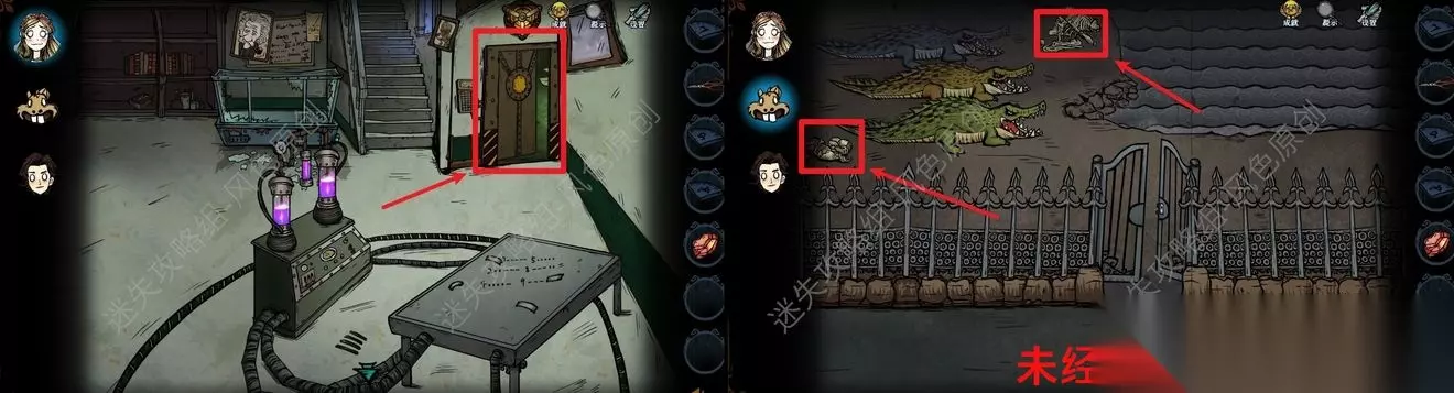 80.进入图中的大门里,鳄鱼左方可获取【鳄鱼蛋壳】,操控角色换为奇奇,可在右方的骸骨堆中获取【塔罗牌:审判】。 80
