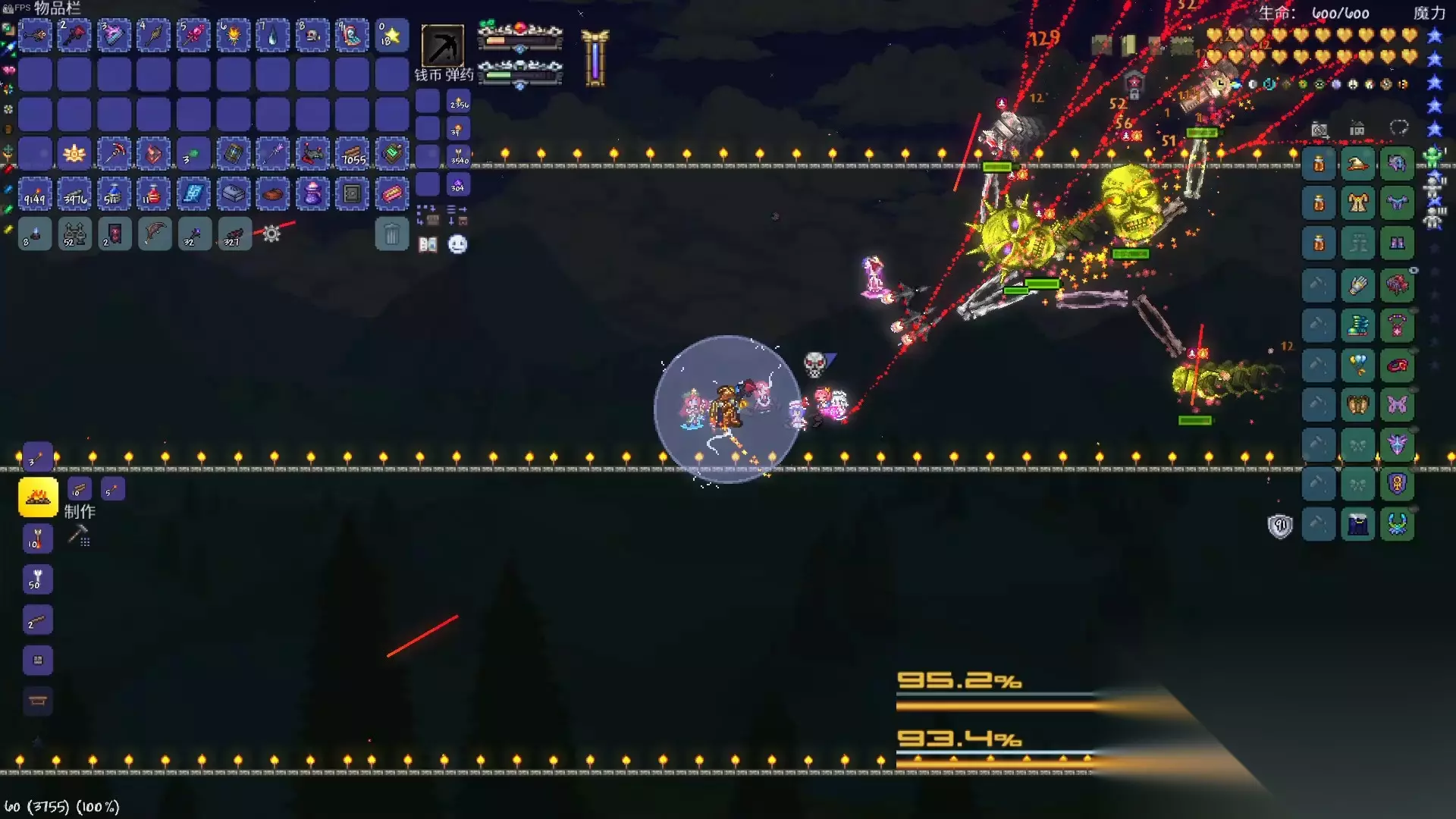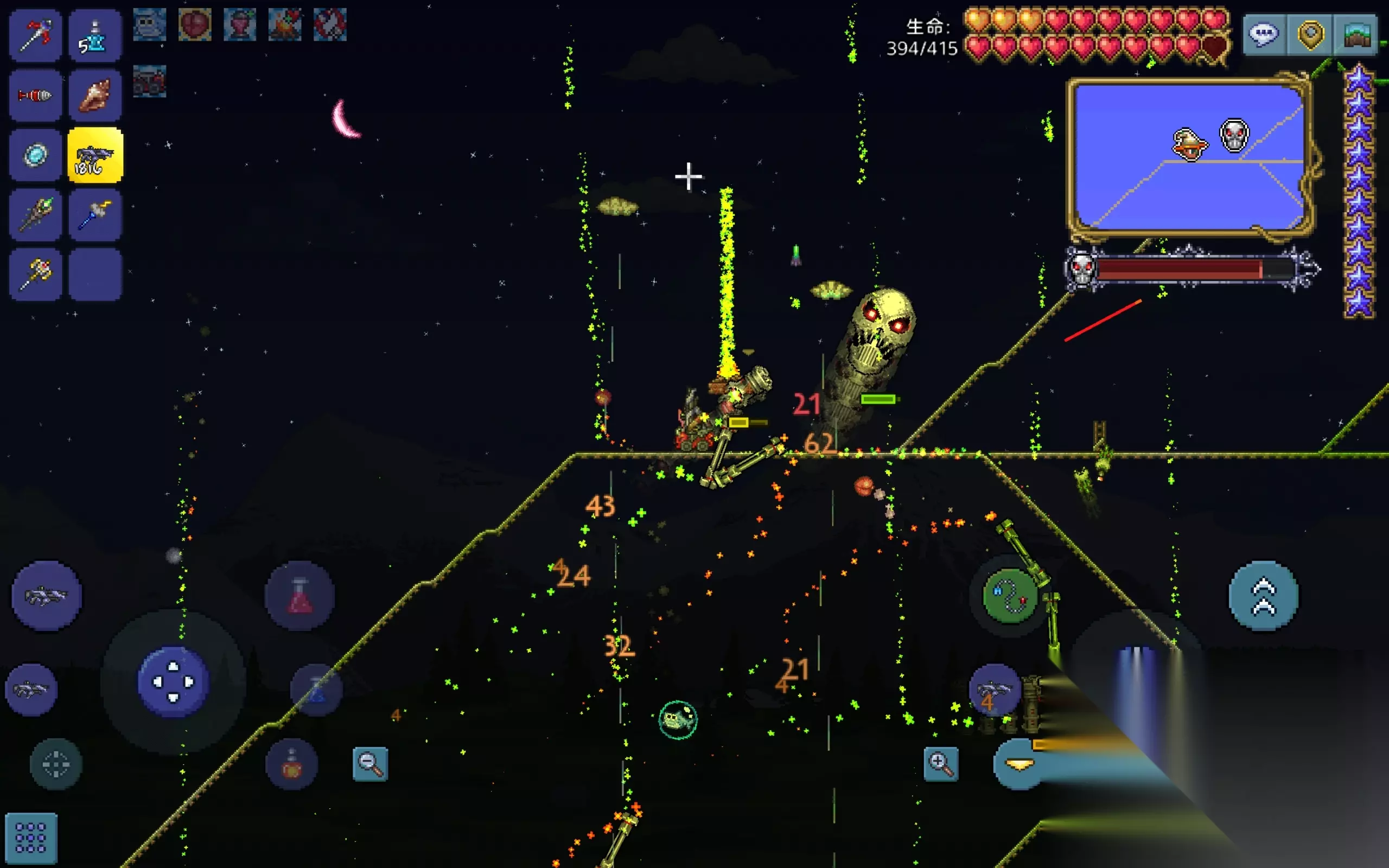 装备选择很关键,推荐黑曜石套装或暗影/猩红套,防御够高才能扛住偶尔的失误。武器方面,星星炮、熔火之怒或迷你鲨都不错,远程更安全。配饰优先提升机动性,比如幽灵靴、克盾或蛙腿,搭配二段跳效果更好。药水记得带铁皮药剂和恢复药,篝火和红心灯笼也能提高回血效率。如果输出不够,可以先用三发猎枪过渡,但狱石武器会更稳。