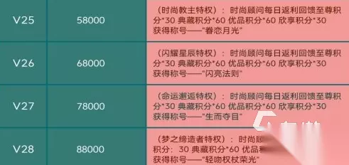 充值达到88000达到V28,可以获得之前的所有奖励,以及至高无上的称号“轻吻权杖荣光”,每天还能够获得至尊积分30点,典藏积分30点,优品积分60点,欣享积分30点,奖励十分优厚。