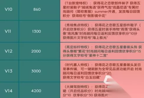 充值4200元达到V14,能够解锁全部的花之恋歌五星套装,时尚顾问也有每日大量返利回馈,还有30点欣享积分,以及图片称号“直觉渲染”。