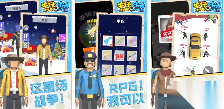 该作突破传统枪械框架,主打策略性射箭解谜玩法。地图中多人质被绳索悬吊于高空或险崖边缘,玩家需预判风速、角度与重力影响,精准命中绳结实现营救。每关限时机制叠加倒计时压力,考验反应速度与空间判断能力。美术风格简洁明快,关卡设计层层递进,兼具休闲性与挑战性。 手机扫码下载233乐园APP预约 预约订阅最新动态 优先233乐园APP下载 3、《牛仔3D》