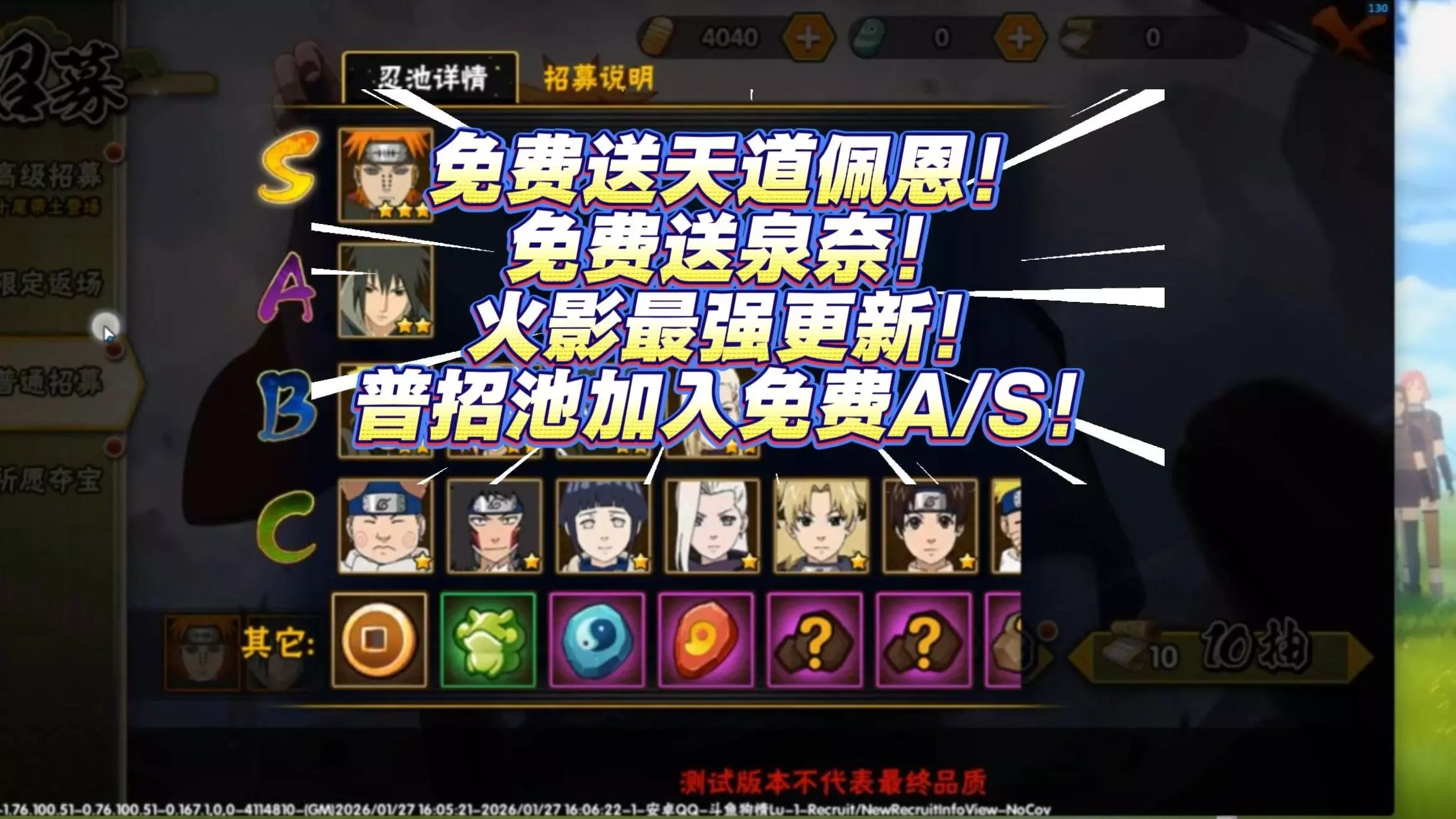 手游情报 免费送天道佩恩!免费送泉奈!火影最强更新!普招池加入免费AS!