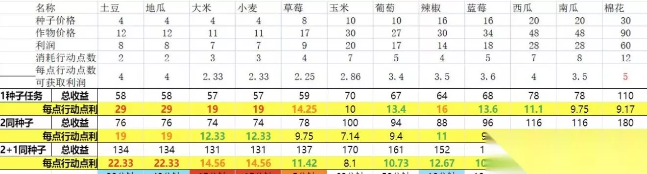 比起均收入,选择点数低的作物完成任务比较公道。