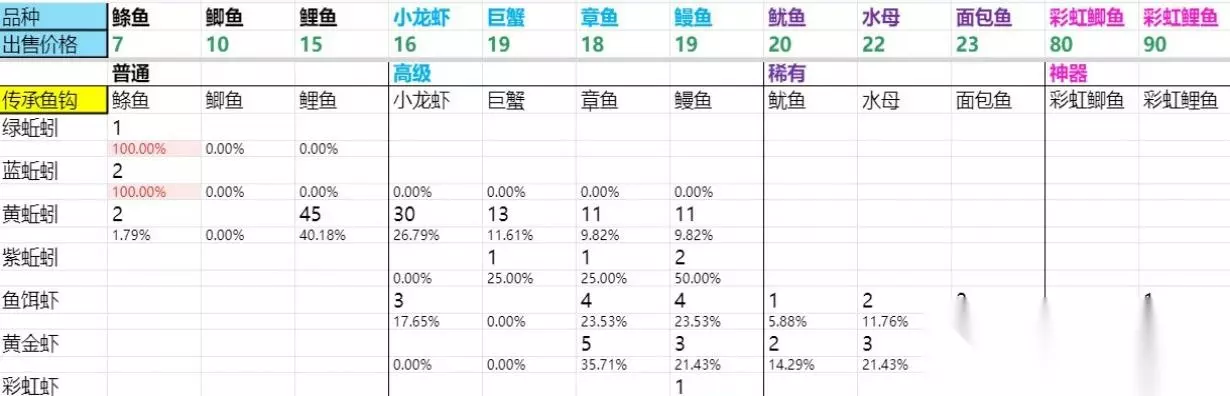 升3本我个人认为是最难的。2本商店销售2种鱼钩和4种鱼饵。 主要是鱼饵的选择,对于没有大资料统计的网友来讲很容易摒弃,原因竹子鱼钩+黄蚯蚓有时候会连连连出鲦鱼让人思疑这鬼玩意是不是不出鲤鱼。 不过,竹子鱼钩+黄蚯蚓依然是升3本最速的独一连合,原因该连合鲤鱼概率最高,只能硬钓。(这边暂不考虑寄托给的高本鱼具) 若鲤鱼提前钓满(15条),能够换树枝+黄蚯蚓增补鲫鱼。