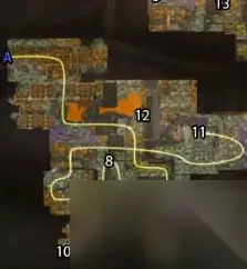 对话后接取【晋升印章 1】,要你去收集【燃棘宝钻】、【尖石宝钻】和【血斧宝钻】三块宝石以及【原始晋升印章】。 三块宝石都需要在黑下杀BOSS获取,【燃棘宝钻】产自BOSS【指挥官沃恩】(下图中5 的位置)、【尖石宝钻】产自BOSS【欧莫克大王】(下图中3的位置),【血斧宝钻】产自BOSS【维姆萨拉克】(下图中11的位置)。