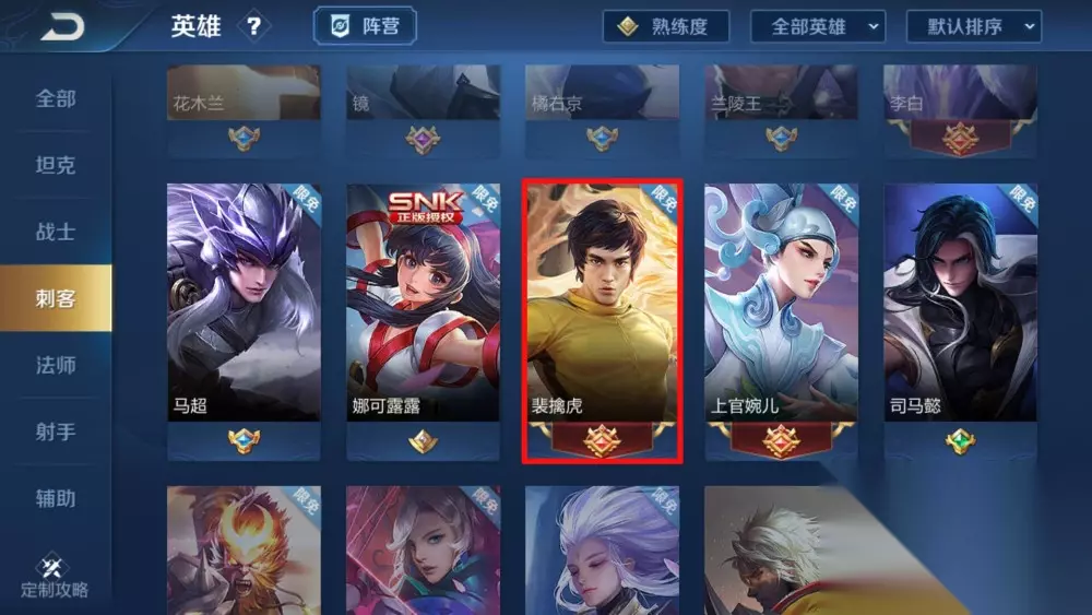 第一步:来到英雄列表,选择【裴擒虎】英雄。