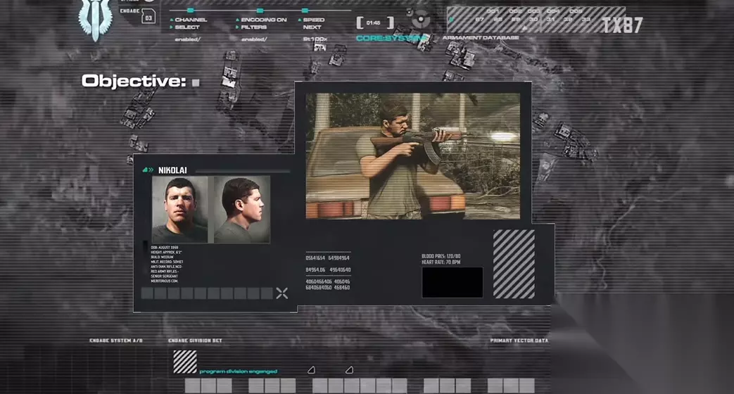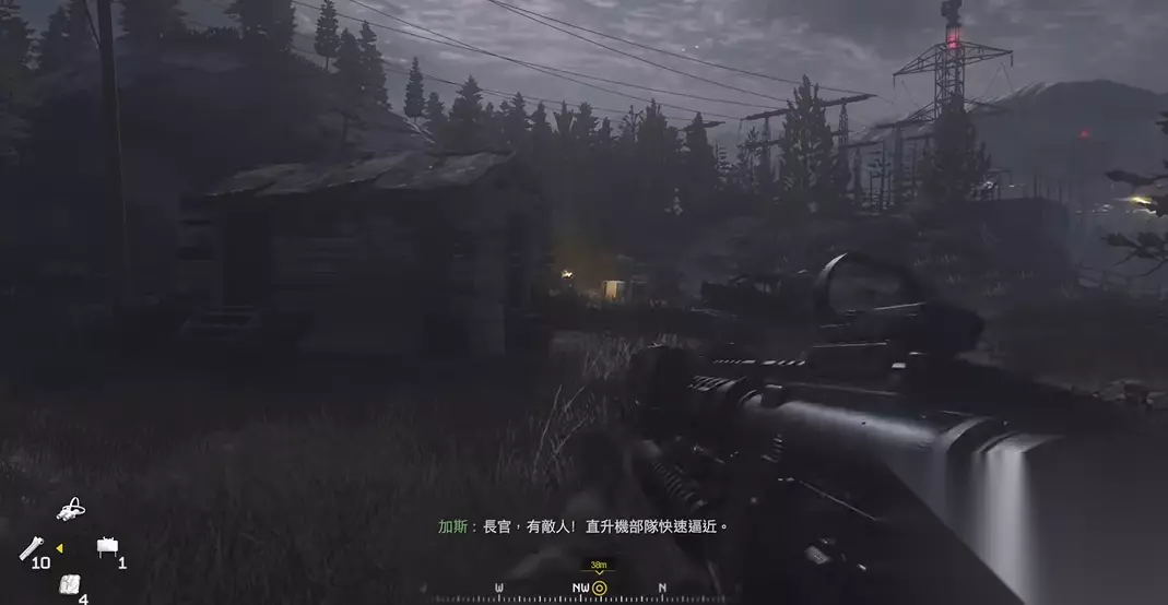 第四关名为黑障,这一关的核心玩法发生了显著变化,玩家需要操作AC-130空中炮艇机,为夜间行动的地面特遣部队提供远程火力支援。通关的关键在于准确区分敌我目标,所有在热成像屏幕上显示为白色高亮或发光轮廓的单位均为友军,你必须绝对避免误伤他们,任何攻击友军的行为都会立刻导致任务失败。你的视野完全依赖于飞机上的传感器屏幕,战斗将在多个渐进式的区域展开,你需要听从地面指挥官的指令,逐步清除推进路线上的敌人,确保车队安全抵达撤离点。