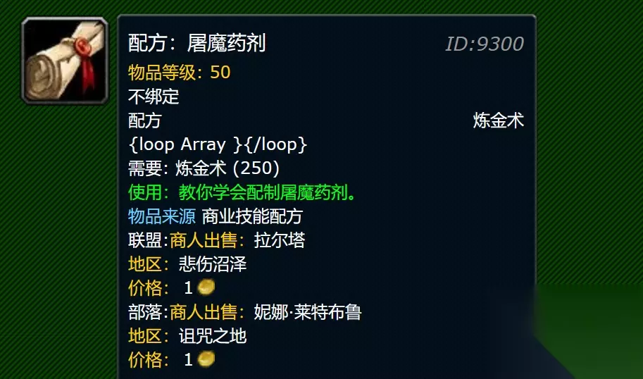 相信不少玩家们已经了解了P3阶段团本大概的内容,我们会发现P3阶段中恶魔类的BOSS最多,这个时候就需要到一个很重要的药剂了,这个药剂叫做屠魔药剂,而这个药剂在香草时代白送都没有人要,但是这个阶段却成为了硬通货,如果前期准备的话可以进行售卖大赚一笔,当然也可以留着开荒使用,该药剂会对恶魔的攻击强度提高265点持续5分钟,材料也比较简单,只需要格罗姆之血,幽灵谷,水晶瓶即可。