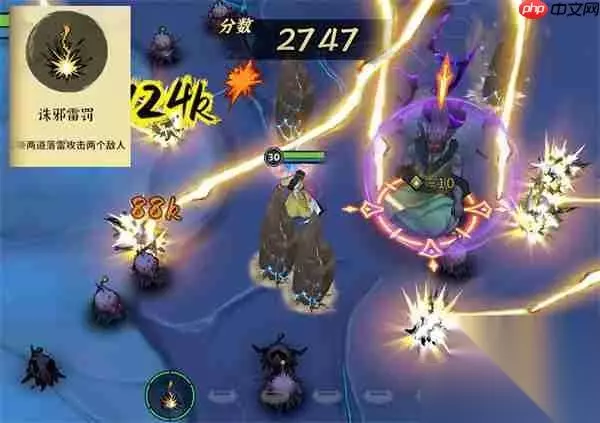 雷罚流:诛邪雷罚、神霄雷罚、惊神雷鞭。 诛邪雷罚为高爆发单体技能,对付boss非常有效。神霄雷罚支持连续释放两次,增强连贯性输出。惊神雷鞭突破后攻击数量翻倍,并可调整方向针对boss发起攻击。雷罚流整体以脱手技能为主,爆发力强且操作灵活。