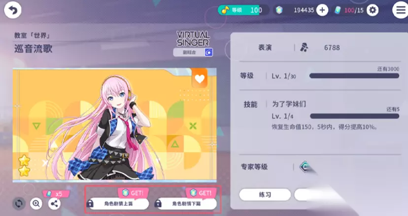 17、演出能量饮料 能通过兑换所还有活动奖励来进行获取,它能帮助恢复演出的能量,大的能恢复10点,小的能恢复1点。 18、音乐卡 演出任务白金奖励、主线剧情阅读奖励等都能帮助获得音乐卡,它的用处是在音乐商店里面兑换歌曲。 19、歌手卡 角色等级升到2、23、33和34这些等级的时候都能从奖励中得到它,用途是在音乐商店里面换取特定成员的曲目。
