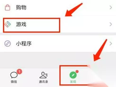 1.首先我们打开手机里面的微信,然后找到【发现】里面的【游戏】并点击,下图所示: