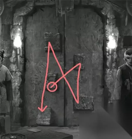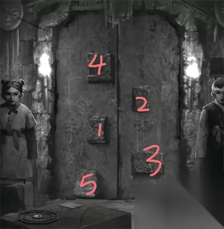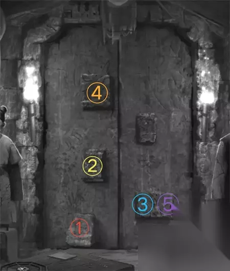12、来到大门位置按照顺序点击打开石门。