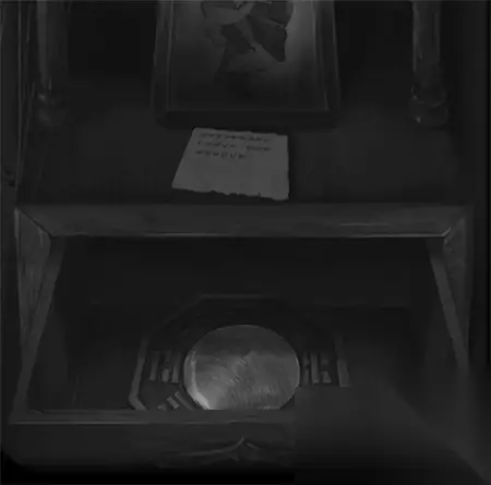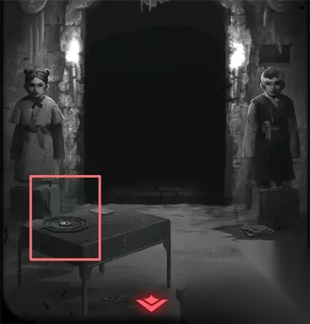 48、将铜尺和信件放在右侧的洞口中。
