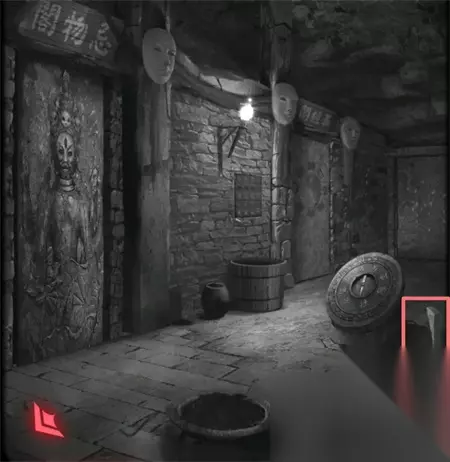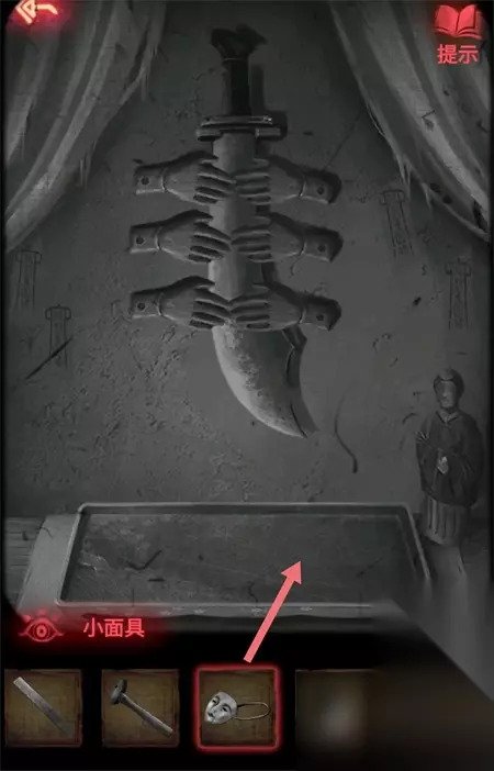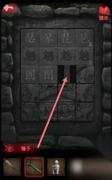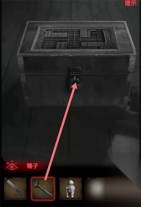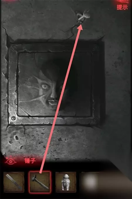 2、点击右边墙壁上的机关能够找到道具锤子。