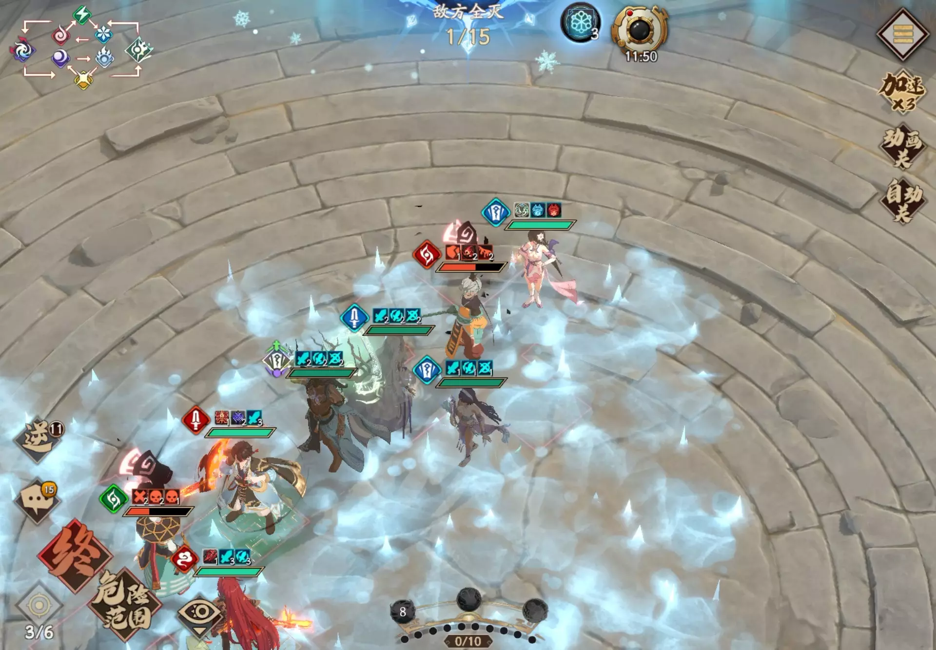 一回合逃课。冰糕无需要练度,只要开刷cd的3c,冰粒也不需要什么练度。寒月开穿刺3c,带咒师套。法宝带旗子和扇子。扇子也能够减法师cd,这样的话,寒月能无限遛冰…
