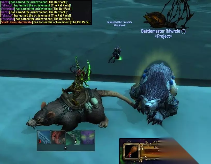 魔兽世界7.1鼠帮成就玩家摸索了很久了,鼠帮成就是很有挑战性的,最近有玩家完成鼠帮成就,一起来看看魔兽世界7.1鼠帮成就怎么获得的吧! 在馆长和麦迪文之影之间的地区,会刷新几只老鼠。 老鼠的位置分别在馆长的后面,通向麦迪文之影的走廊的尽头,主平台的右边,以及主平台上。 主平台上的老鼠————>