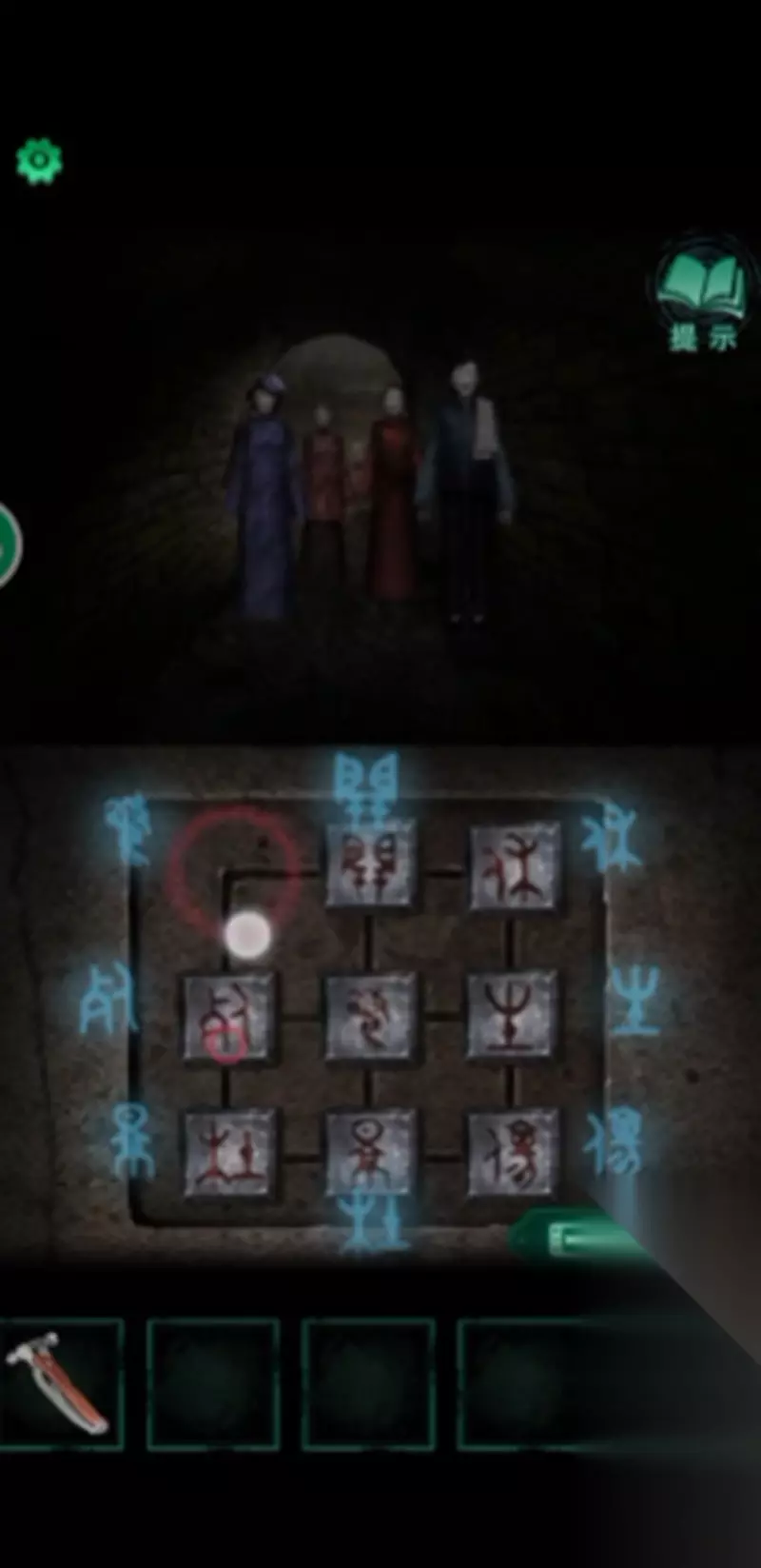 解谜过程中会有鬼怪前来干扰,我们可以通过点击屏幕来击退它们。保持冷静是关键,在鬼怪靠近前完成文字排列才能顺利通关。如果觉得难度太大,屏幕下方的视频图标提供了跳过选项,观看广告后可以直接开启石板大门。