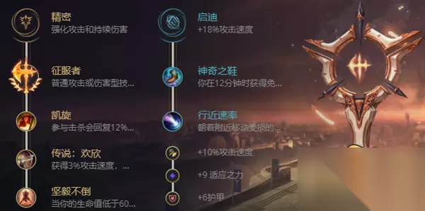 主系:精密(征服者、凯旋、欢欣、坚毅不倒) 副系:启迪(神奇之鞋、行近速率) 狂战士英雄技巧 1、技能连招:R-E-W-A-Q 2、技能加点:主Q副E,有R点R。 3、奥拉夫虽然没有突进和加速及鞥呢,但是真实伤害高,就算全肉装一样伤害非常高,最主要的就是E技能是真实伤害而且CD短。 4、奥拉夫每次捡起斧头都能减少4.5的技能冷却,在打团的时候开R可以免疫控制,重点切敌方C位。