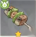 1、奇怪的蒙德烤鱼 1、 星级:★ 2、 加工材料:兽肉*1、面粉*1 3、 描述:小火细烤的鱼串。可惜鱼香中掺入了过多的焦香,鱼肉的口感也有些柴硬。 4、 使用效果:复苏选中的角色,为其恢复50点生命值。 5、 获得方式:完成烹饪蒙德烤鱼