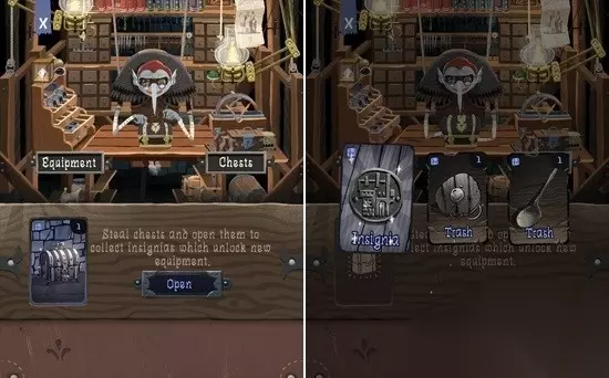 本作结合了卡牌与RPG两种元素,游戏中玩家可不是一名牌手,而是一名潜伏在黑暗中的小偷。身为一名合格的小偷,他可不希望自己被那些傻头傻脑的守卫们抓住,更重要的是他要将隐藏与深处的宝箱偷出来,顺便把散落于各处的金子收入囊中。如果是一款ARPG类型的游戏,或许玩家们也不会觉得这个题材有多特别,但是以卡牌的形式展开这个任务,听起来就非常吸引人。